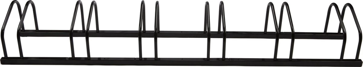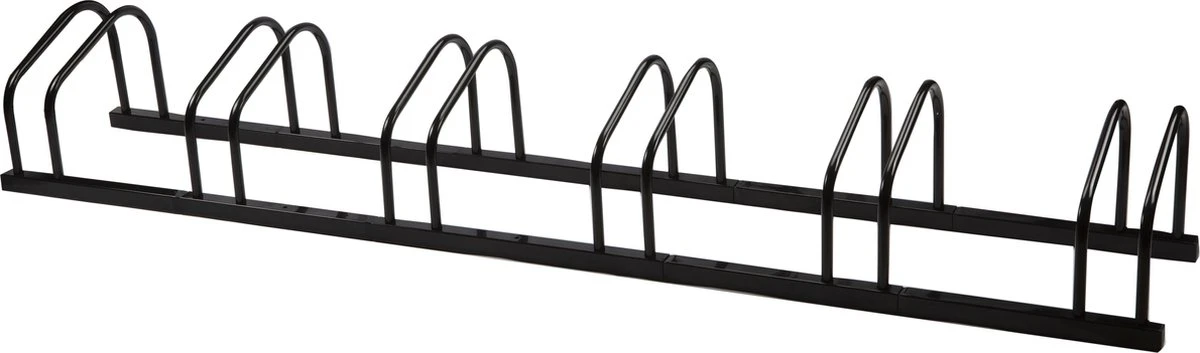 Het fietsenrek is gemaakt uit stevig zwart gepoedercoat staal. Het fietsenrek wordt geleverd als bouwpakket en zet je vliegensvlug in elkaar met het meegeleverde montagemateriaal en de handleiding. De zes beugels zijn geschikt voor fietsen met een maximale banddikte van circa 6.5 centimeter. Met een afstand van circa 25 centimeter tussen elke plek is er voldoende ruimte tussen de fietsen, zodat sturen en kabels niet in elkaar verstrikt raken. Inclusief bevestigingsmateriaal voor grond of muur. Het frame van het fietsenrek is voorzien van 4 schroefgaten. Het fietsenrek wordt inclusief 4 schroeven en 4 pluggen geleverd om het rek aan de grond of aan de muur te bevestigen.