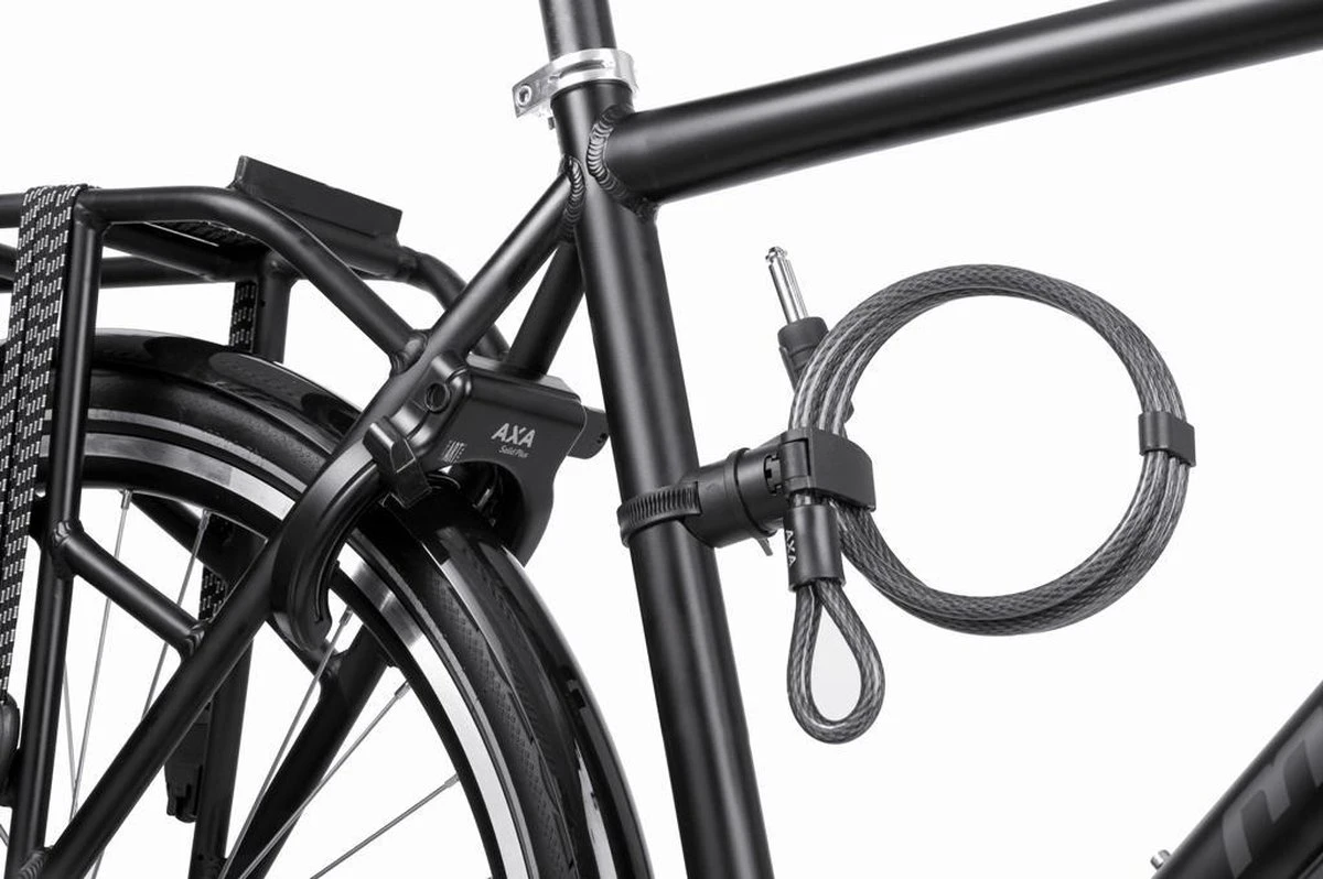 De AXA RLE 150 Plug-in kabel kan gebruikt worden in combinatie met de ringsloten AXA Fusion, Defender, Solid Plus en Victory. De Plug-in kabel werkt diefstal vertragend doordat je fiets wordt verankerd aan een vast object als een straatlantaarn of hek. Deze kabel is met zijn 150 cm geschikt voor het verankeren van je fiets ook als deze wat verder van een object staat. De handige universele framehouder maakt het transport heel eenvoudig.