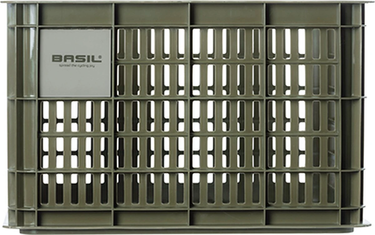 De Basil fietskrat in de maat M is een groene fietskrat voor op een dames- of herenfiets. De fietskrat is gemaakt van duurzaam materiaal en heeft een inhoud van 29,5 liter.