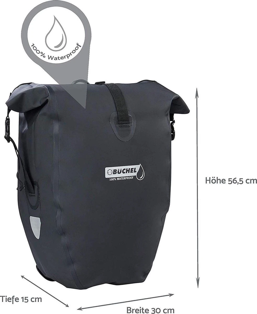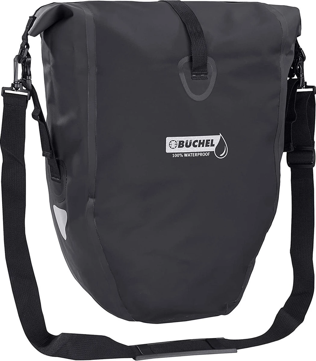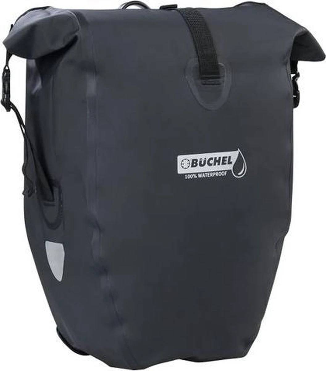 Büchel Luxe Pakaftas / Enkele fietstas – 100% Waterdicht – Met Schouderband – Luxe Pakaf-Systeem – 25,4 Liter – Zwart