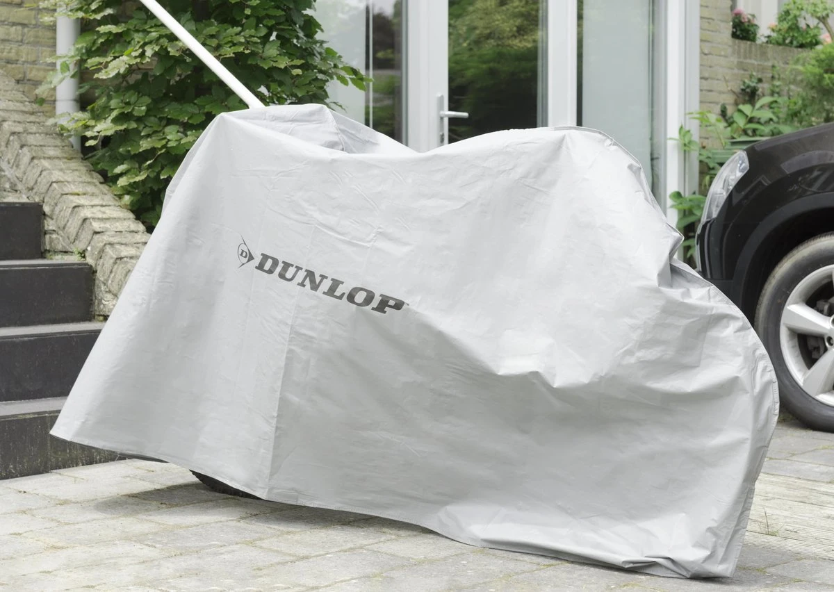 Heb je niet de mogelijkheid om je fiets binnen te zetten? Of wil je je mooie fiets beschermen tegen stof en ander vuil? Deze stevige hoes van Dunlop beschermt je rijwiel tegen invloeden van buitenaf.