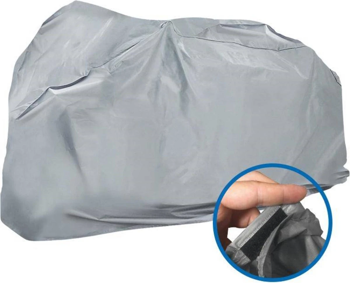 Met zijn afmetingen van 210 x 110 cm past de fietsbeschermhoes over vrijwel elke tweewielerfiets. Ook handig om je elektrische fiets te beschermen als je hem buiten moet laten staan. Hij is zelfs ruim genoeg voor kleinere brommers.