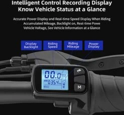 Weergave: batterij, kilometerteller, dagteller, snelheid, diagnose en koplampactivering.