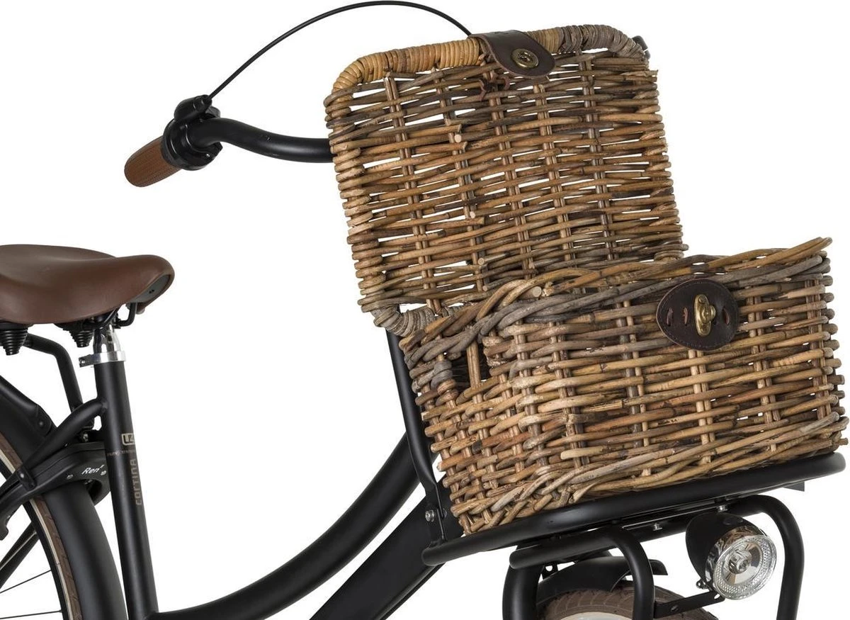 Onze handgemaakte Fastrider Sera Rotan Fietsmand met klep, met zijn stevige handvatten en weefpatroon, geeft je fiets een robuuste natuurlijke uitstraling en biedt uiteraard genoeg draagruimte voor je boodschappen of andere bagage. Hij is gemakkelijk op je voordrager te bevestigen door middel van de 4 meegeleverde tyraps.