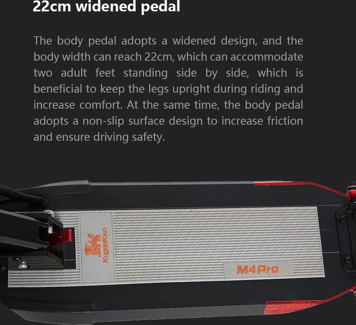 De Kugoo Kirin M4 Pro is een elektrische step met een bereik van 65km en wielen van 10 inch. Gemakkelijk stel je snelheid van de drie versnelling in en daarna geef je gas en zo verplaats je je snel van A naar B.