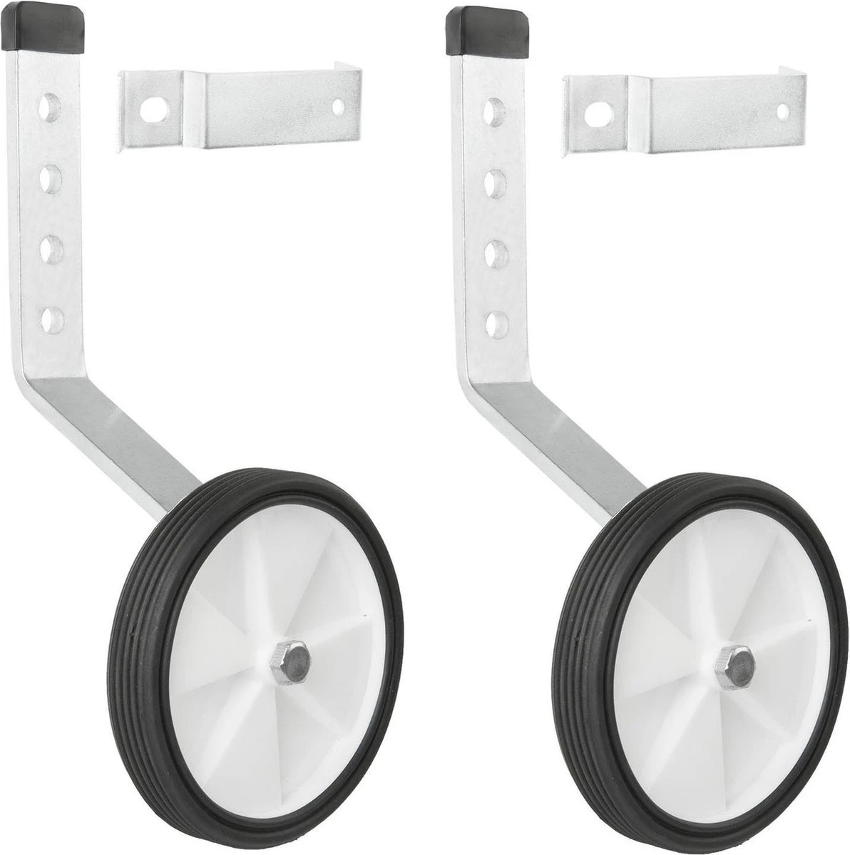 – Met beugels die het draaien van de zijwieltjes voorkomen (de beugels klem je tegen de horizontale framebuis)