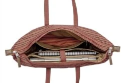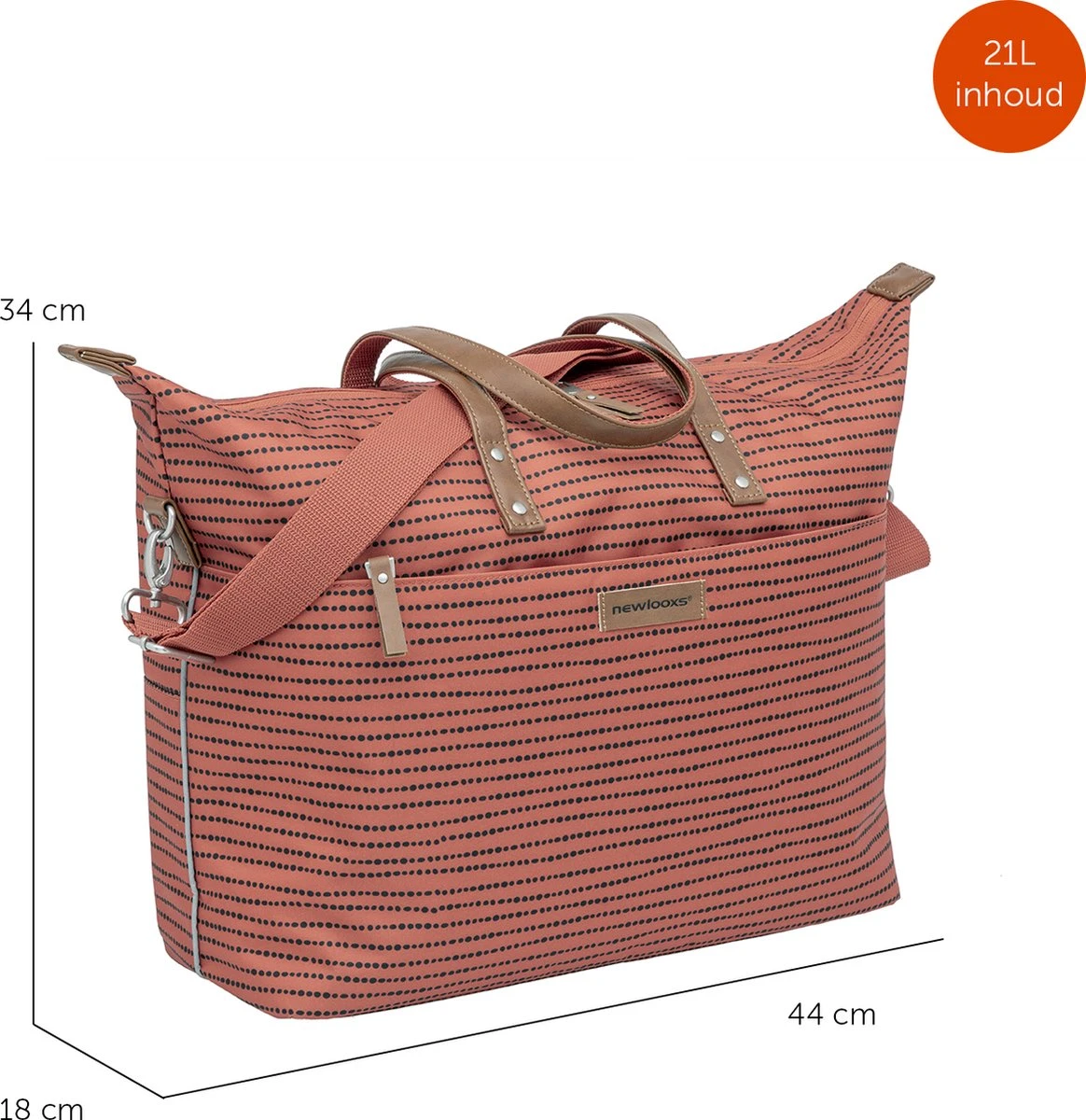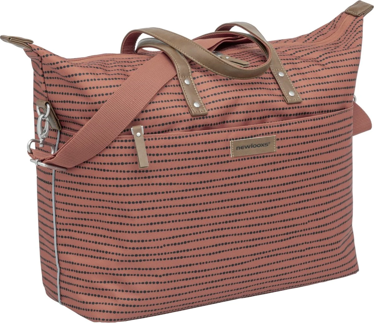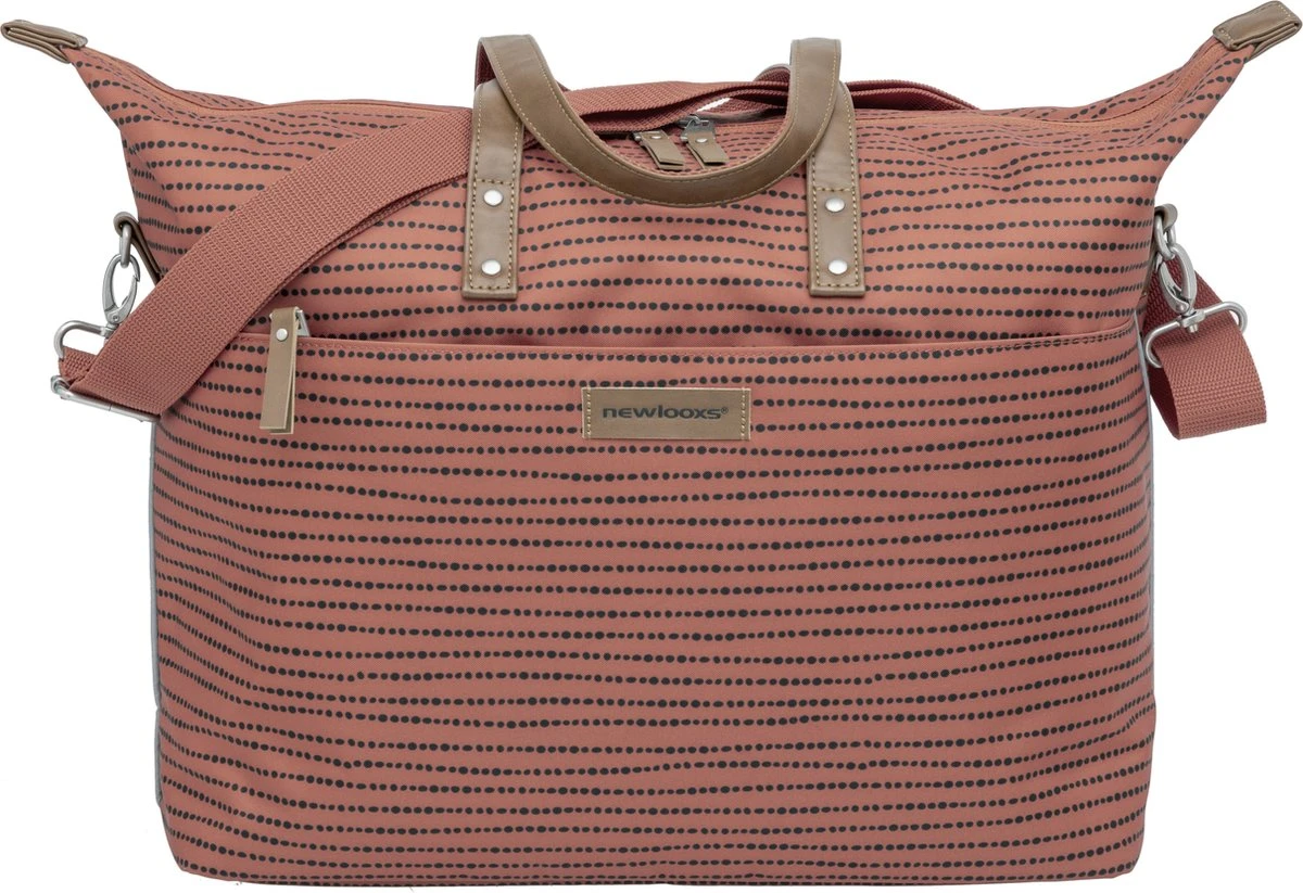 De Tendo is de trendy schoudertas uit de Nomi serie van New Looxs. Deze tas heeft een ruim hoofdvak dat afsluitbaar is door middel van een rits. Binnenin vind je een gewatteerd laptopvak zodat je een 15” laptop goed beschermd mee kunt nemen aan de fiets. Dit laptopvak is 39 x 30 cm. Daarnaast heeft de tas binnenin nog een extra vak met rits en een insteekvak waar een A4 schrijfblok in pas. De twee kleine insteekvakjes zijn handig voor bijvoorbeeld een telefoon. Voorop de tas zit ook nog een voorvak met rits, jij neemt dus al jouw spullen goed georganiseerd mee op de fiets.