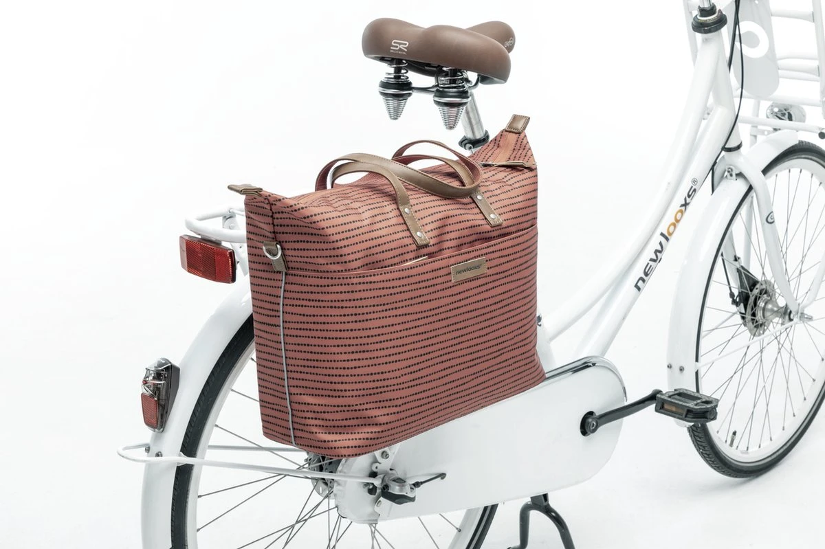 De fietstas wordt aan de bagagedrager bevestigd met New Looxs kunststof haken. Dat maakt deze tas geschikt voor vrijwel alle fietsen, ook elektrische. Je kunt de tas extra vastzetten met het klittenbandje tussen de haken. Als je de tas van de fiets haalt, dek je de haken af met een ritsvakje. Hierdoor heb je geen last meer van de haken en ziet de tas er uit als een gewone schoudertas! Dat maakt de Tendo de ideale fietstas voor woon-werk verkeer!