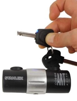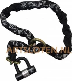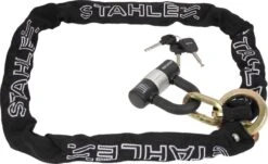 Stahlex slot categorie 3, over het algemeen verlangen verzekeringsmaatschappijen deze categorie voor de beveiliging van brom- of snorfiets of scooter. De afmeting is 10 mm × 10 mm × 140 cm en het gewicht bedraagt 3.6 kilo het toelatingsnummer van ART is mBT 4114, er zitten bij dit slot 3 sleutels.