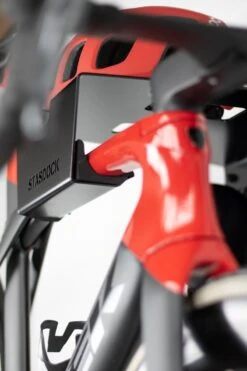 De Stasdock is een krachtige en stijlvolle fiets muurbeugel voor jouw racefiets of mountainbike en is zo uitgerust dat je er ook fietsaccessoires in kunt opslaan, zoals je schoenen, helm, bril en luchtcapsules.
