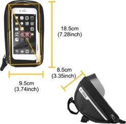 Met de telefoonhouder voor de fiets van TechU™ kunt u zorgeloos uw telefoon meenemen en de navigatie op uw mobiel aanzetten. De waterdichte fietstas heeft ook genoeg opbergruimte om wat extra spullen mee te kunnen nemen.