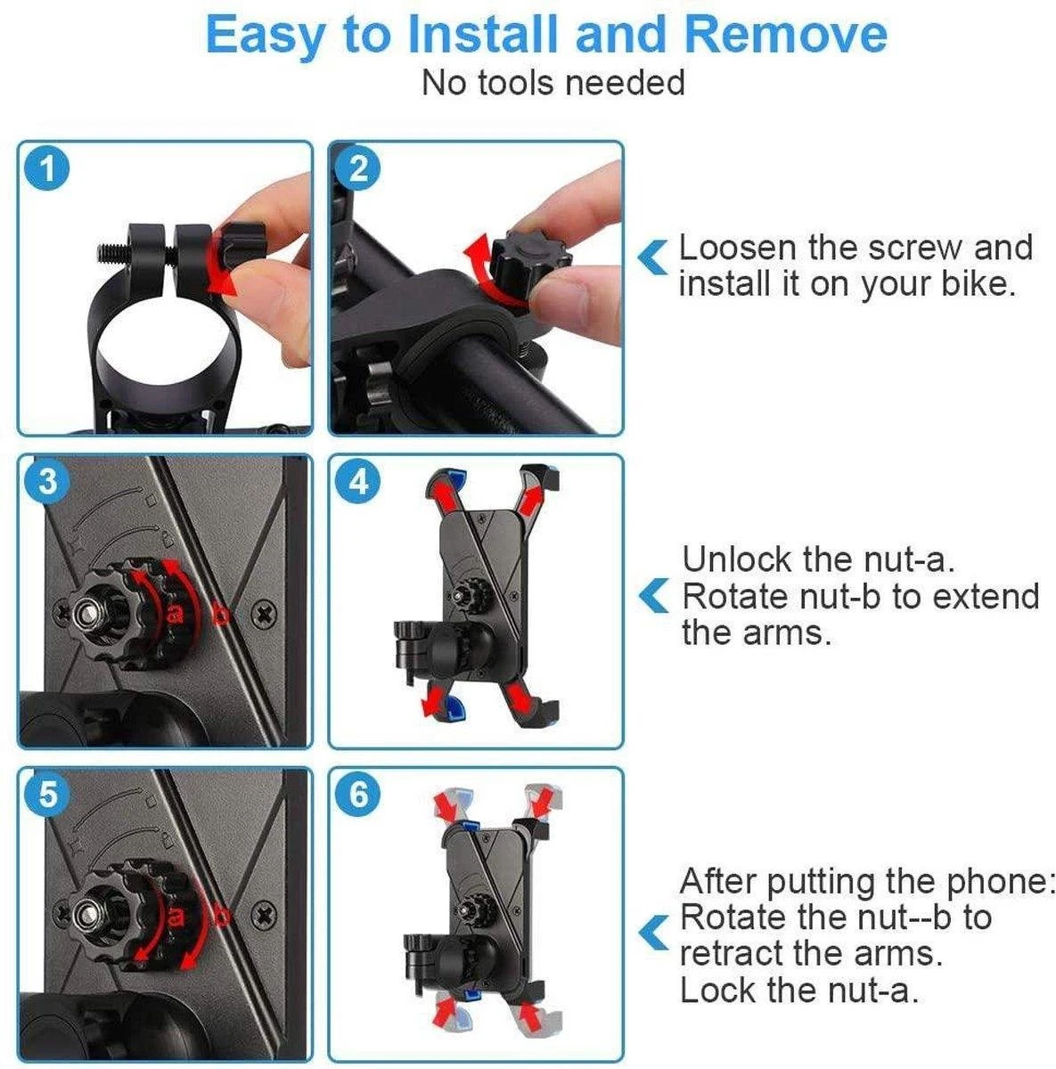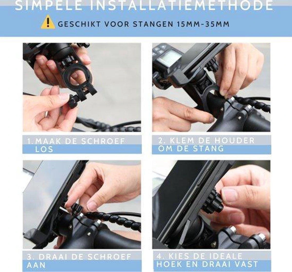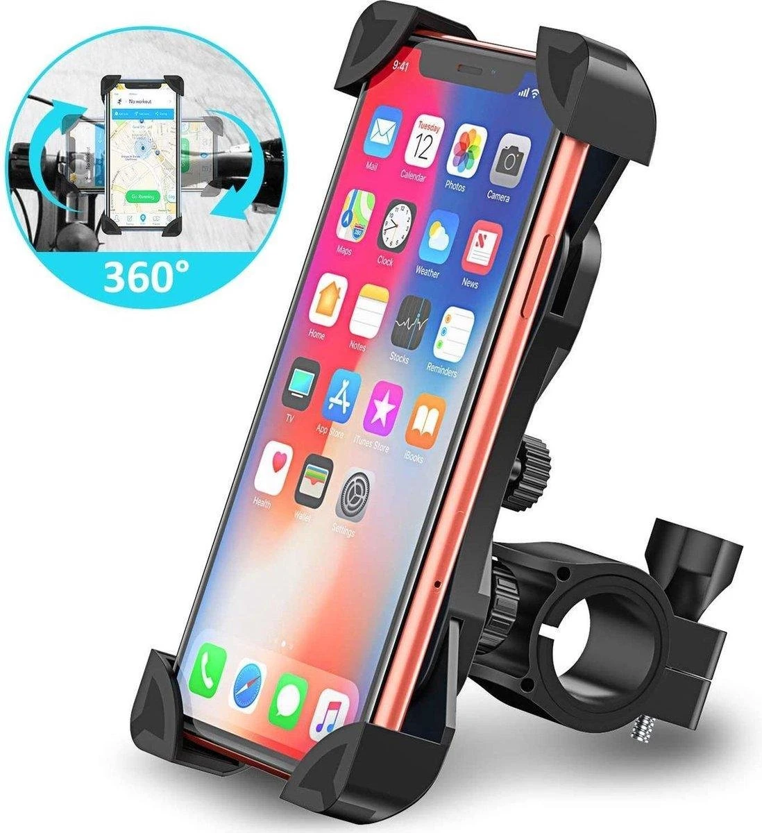 Terwijl u aan het fietsen bent handsfree navigeren met Google Maps of andere fietsroute apps? Bevestig uw telefoon op deze universele mobielhouder, verstel de kijkhoek 360 graden en u bent klaar voor uw fietsrit!