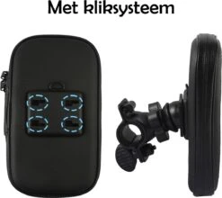LET OP: De telefoonhouder fiets is in verschillende makten verkrijgbaar. Het gaat hier om het XL model. De telefoonhouder dient altijd goed bevestigd te worden om het stuur en de telefoon. Er dient een duidelijke klik hoorbaar te zijn!