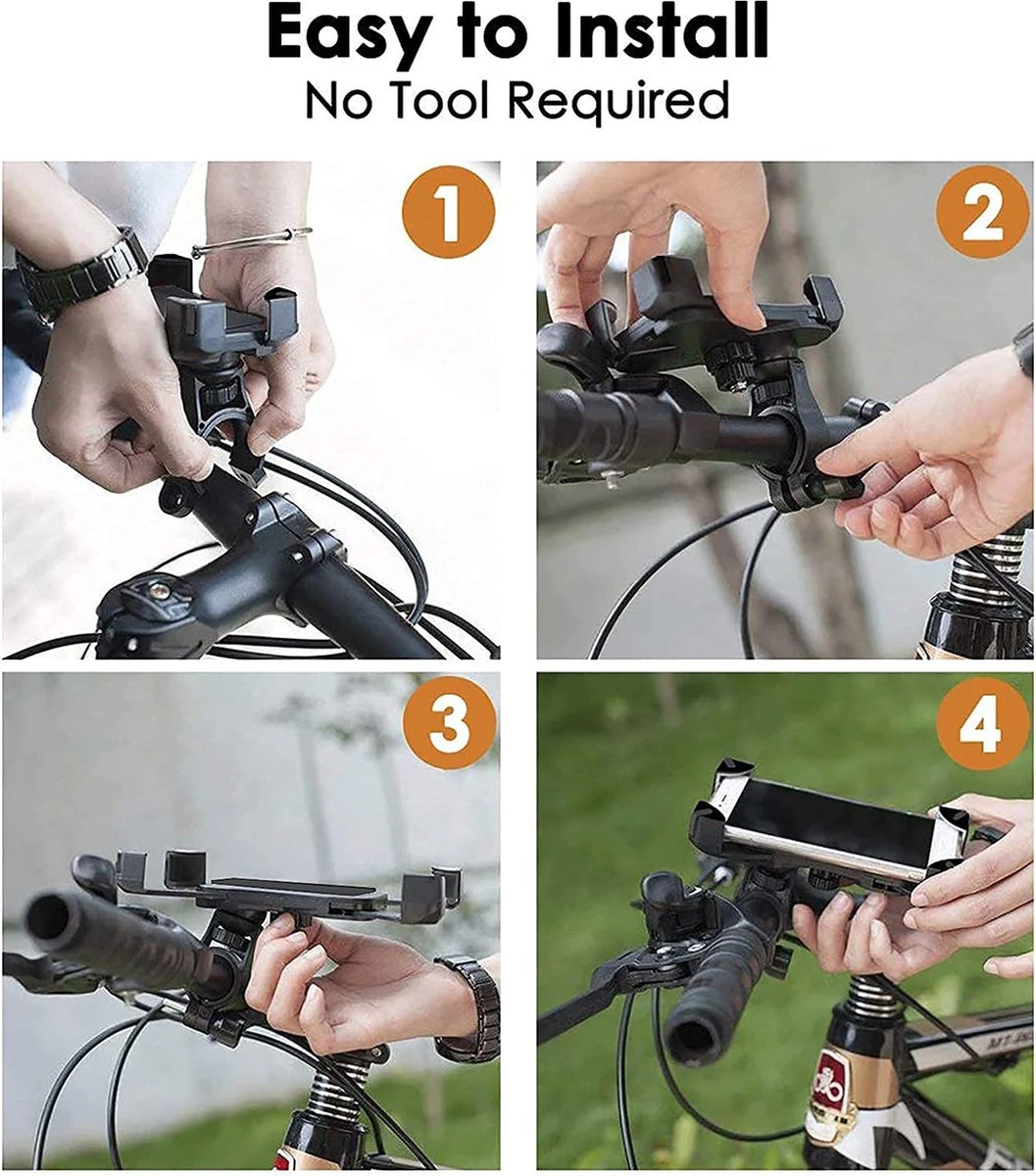 【Eenvoudig te installeren】Het kan eenvoudig zonder gereedschap worden geïnstalleerd. De extra 2 siliconen pads maken je mobiele telefoon meer geschikt voor op het stuur. Afhankelijk van de diameter van het stuur kun je siliconenpads toevoegen of verwijderen. Zeer geschikt voor alle soorten fietsen, motorfietsen, kinderwagens, winkelwagentjes, elektrische scooters, indoor loopbanden, spinningfietsen