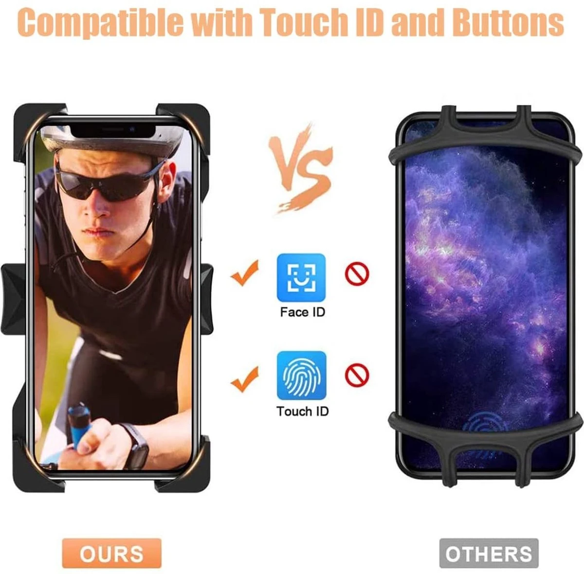 【Brede compatibiliteit】Universele fietstelefoonhouder voor 4,7-7 inch met een dikte tot 20 mm (inclusief telefoonhoes), zoals iPhone 12/11 Pro Max Mini Xs XR X 8/ 7/ Plus 6s 6, Samsung S20 S10 S9 A71 A51 A10, Note 20, 10, Xiaomi en andere mobiele telefoons.