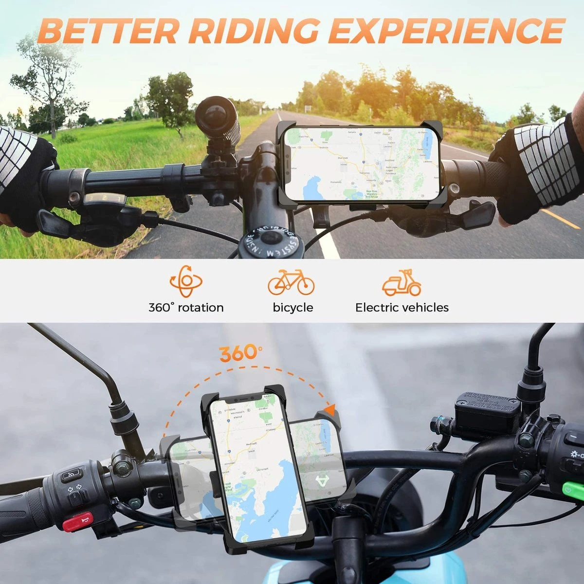 【360 graden rotatie】De beugel voor de mobiele telefoon van de fiets kan 360 graden worden gedraaid om zich aan alle verschillende hoeken aan te passen, waardoor je de grootste flexibiliteit hebt. Het is erg handig om de telefoon te beantwoorden, muziek af te spelen en GPS-positionering tijdens het rijden